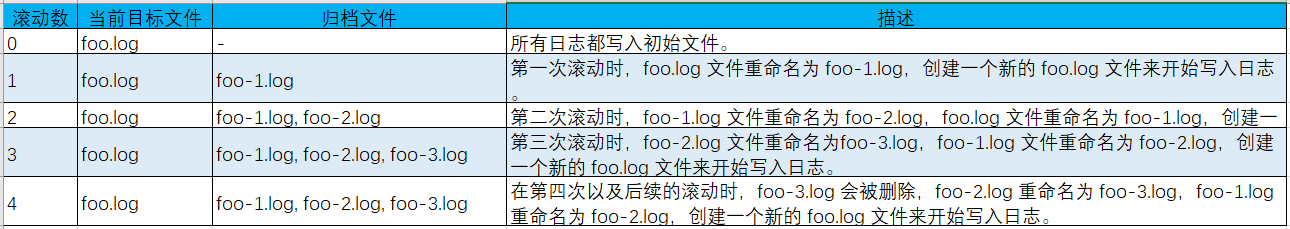 | append | boolean | 当为true(默认)时,日志记录将会添加到文件末尾。设置为 false 时,日志记录写入文件之前会清空文件。 |