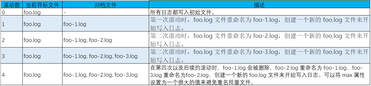 | strategy | RolloverStrategy | 设置确定归档文件的文件名和位置的策略(strategy) |
