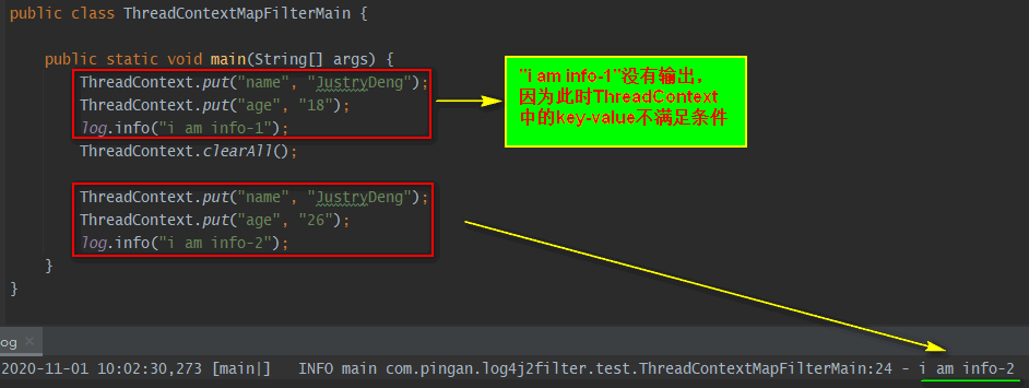 | ThreadContextMapFilter | 通过context(可以理解为一个Map)中对应的key-value值进行过滤。注:上下文默认是ThreadContext,也可以自定义使用ContextDataInjectorFactory配置ContextDataInjector来指定。” |