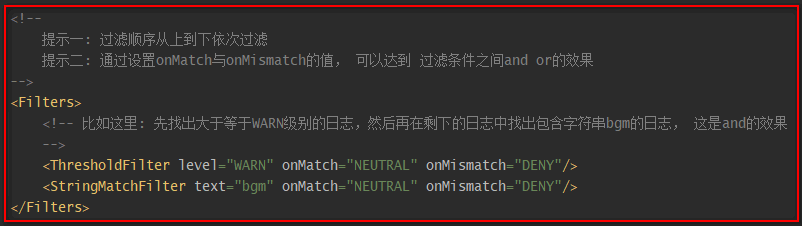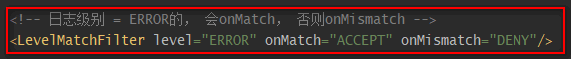 | ThresholdFilter | 若日志级别 >= \${指定的日志级别}, 则onMatch,否则onMismatch |
