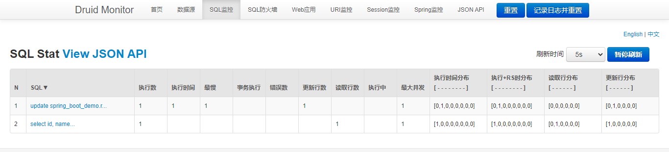 SQL 监控会将项目中具体执行的 SQL 打印出来,展示此 SQL 执行了多少次、每次返回多少数据、执行的时间分布是什么。这些功能非常的实用,方便我们在实际生产中查找出慢 SQL,最后对 SQL 进行调优。