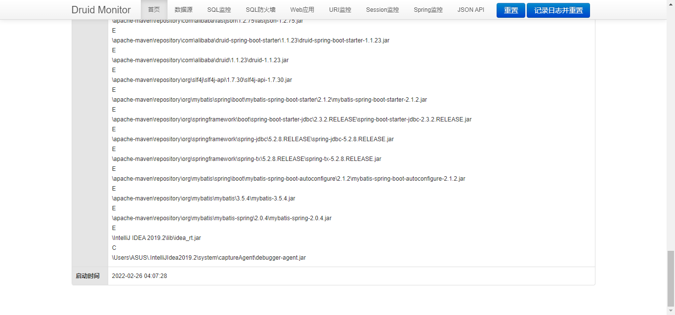 这个过滤器的作用就是统计 web 应用请求中所有的数据库信息,比如发出的 sql 语句,sql 执行的时间、请求次数、请求的 url 地址、以及seesion 监控、数据库表的访问次数 等等。