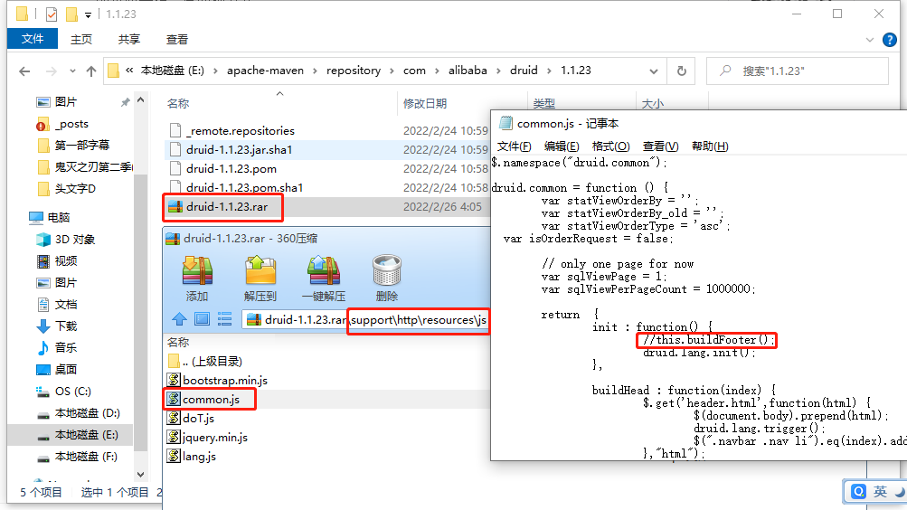 先将jar包改成后缀为rar的压缩类型包,打开common.js文件修改,修改完成后改回jar后缀类型