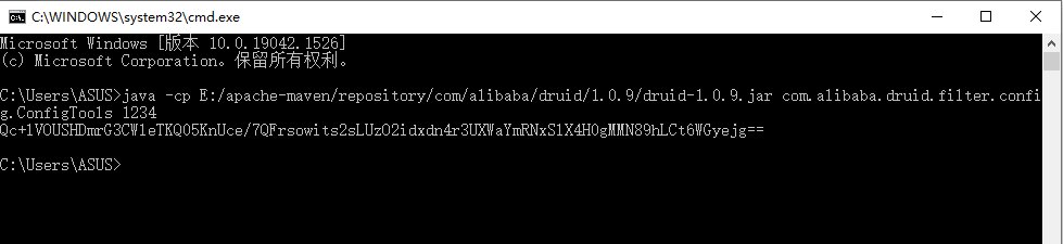 java -cp 路径/druid-版本号.jar com.alibaba.druid.filter.config.ConfigTools 密码