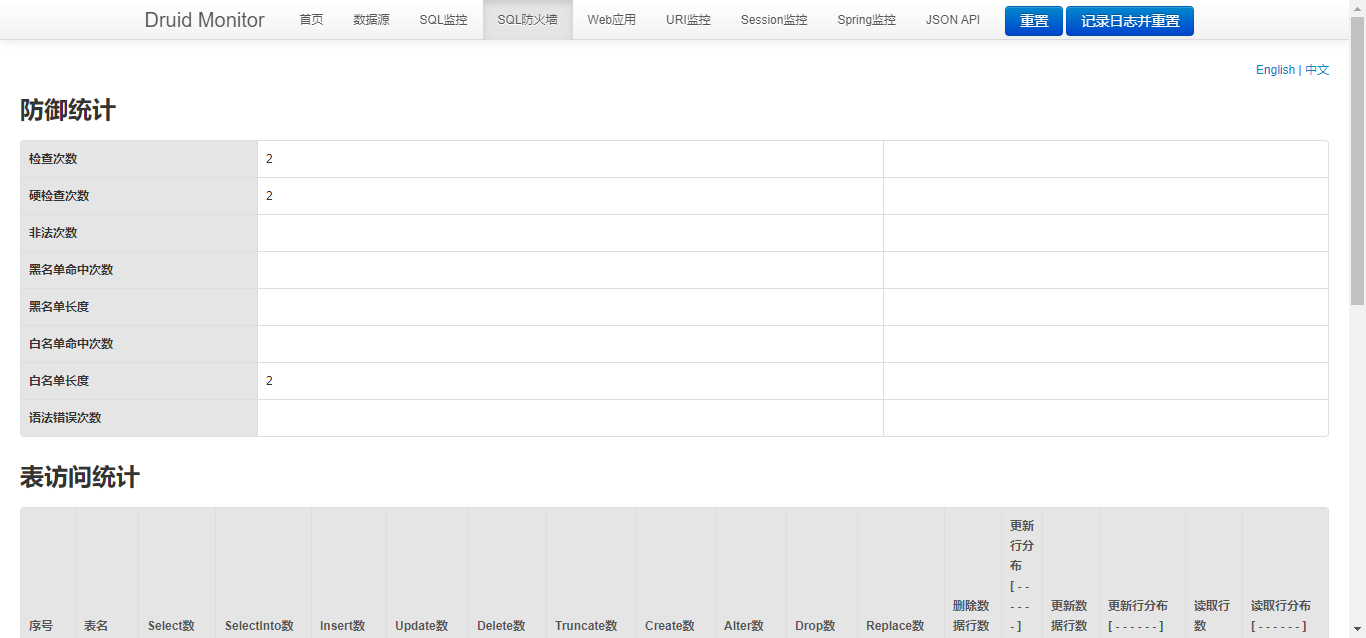 druid提供了黑白名单的访问,可以清楚的看到sql防护情况。