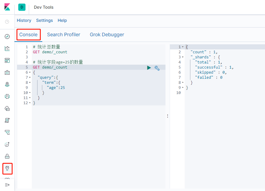 以下借助Kibana的Dev Tools工具来了解一下常用的API使用