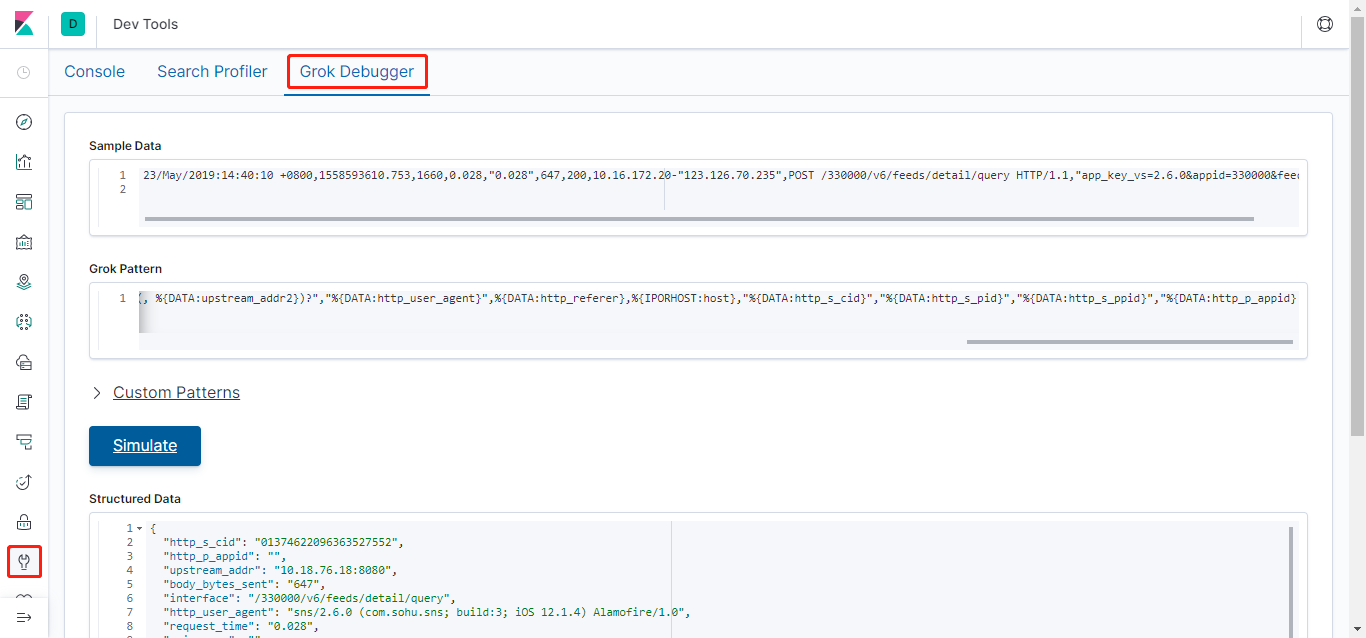 从Kibana 6.4.0版本开始,Dev Tools自带了grok调试功能