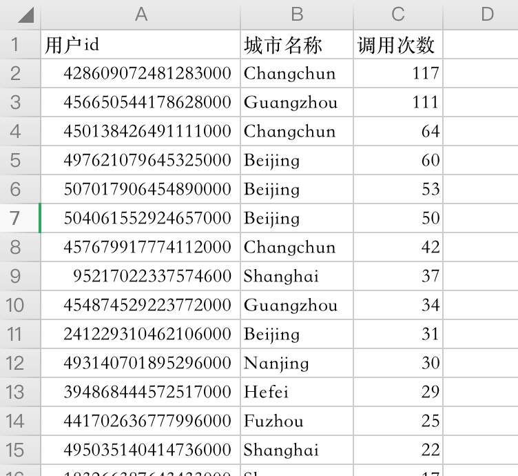 下图的DataTable为查询接口包含"repost"字段,最近15分钟内 前10个调用最多的用户id。