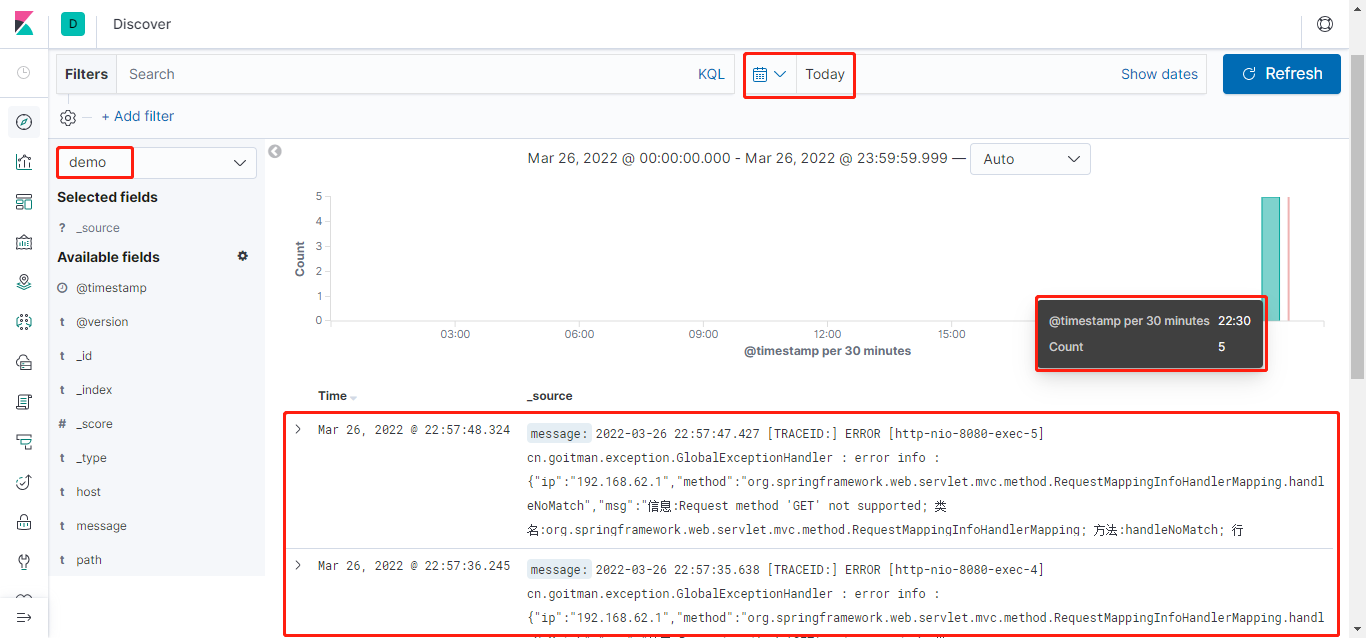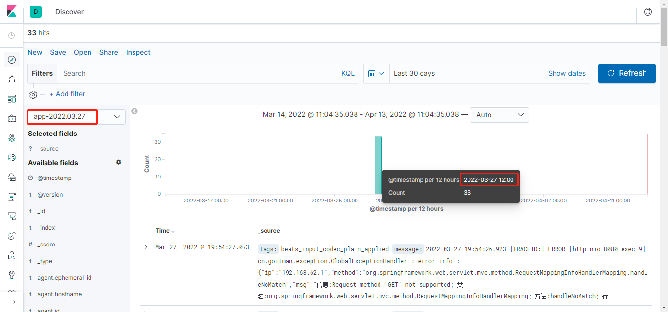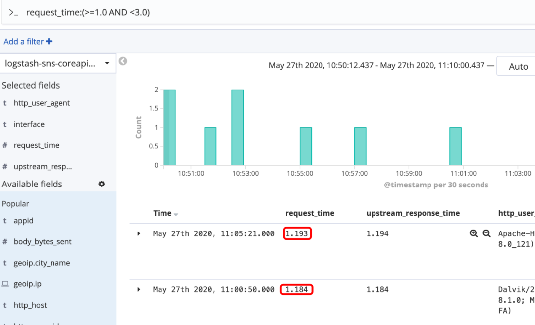 通过grok匹配存储在Elasticsearch中的字段,都是可以使用Kibana的 Discover菜单的中 “Add a filter” 进行查询