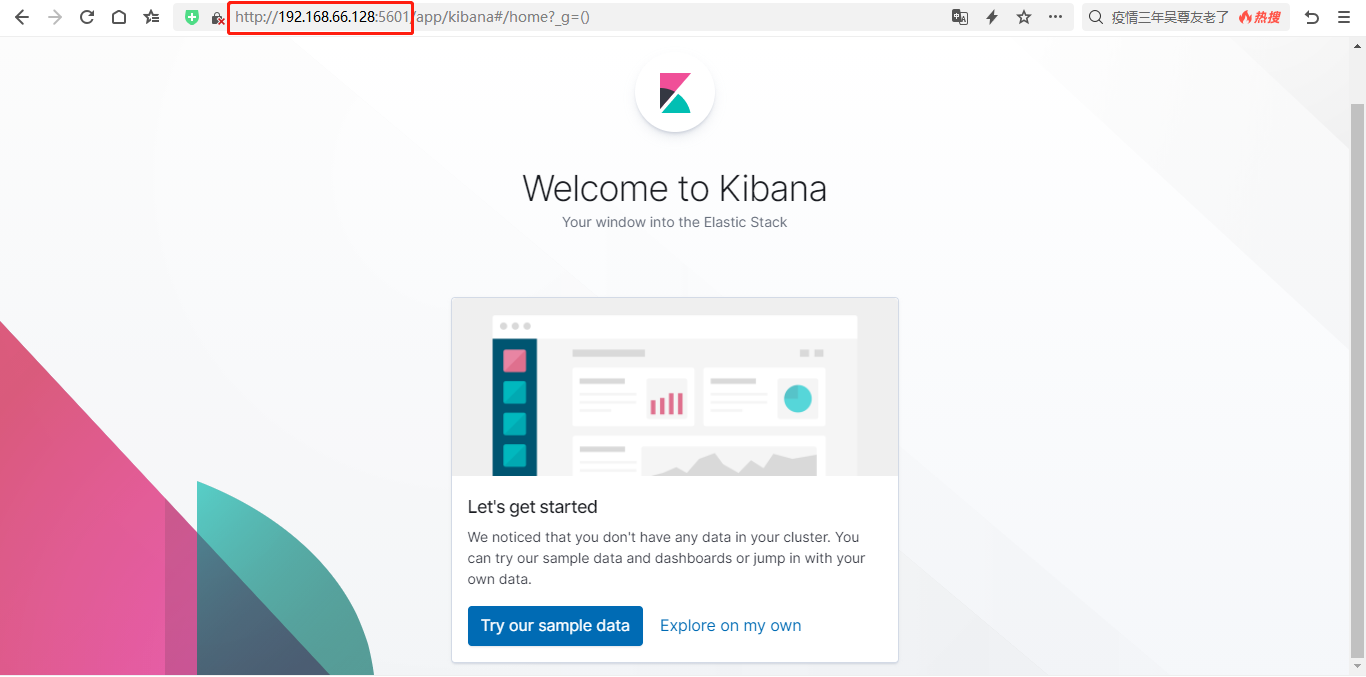 在浏览器中访问 http://ip:5601(可使用hostname - I命令查询IP)