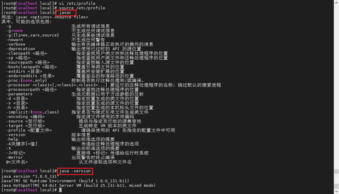 通过javac和java -version命令验证,如下图所示即为安装成功