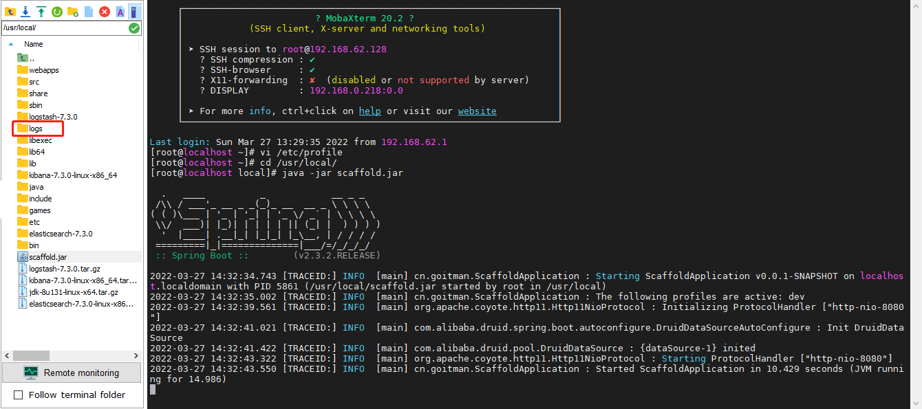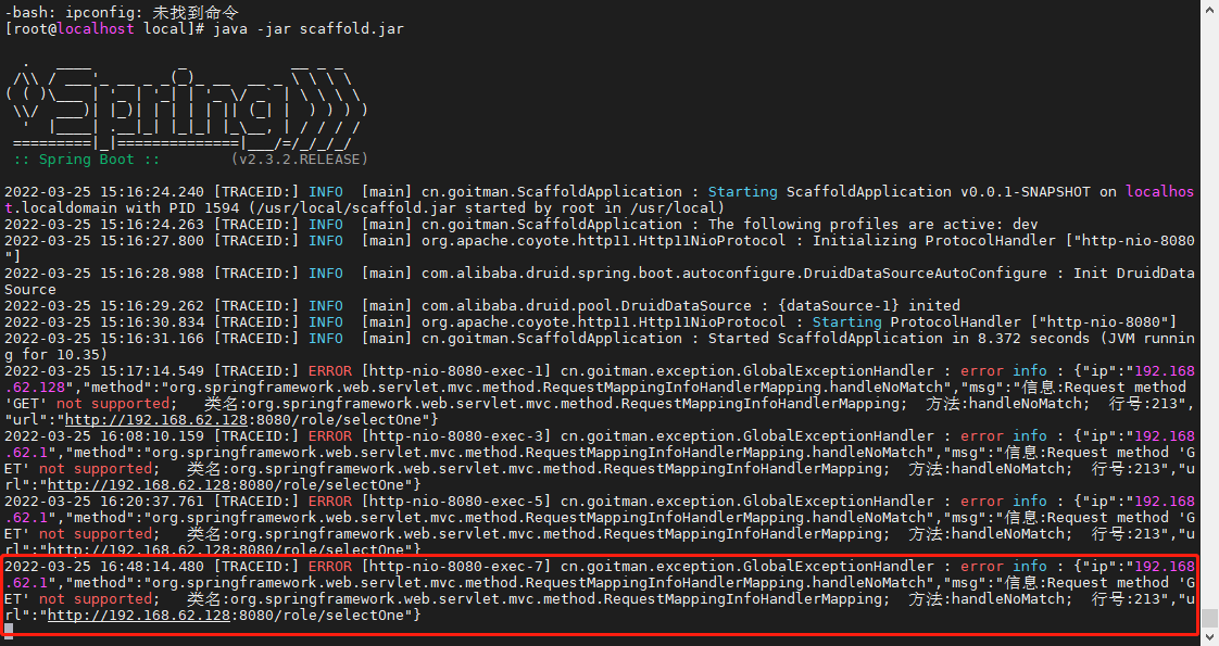 用IDEA将Spring Boot项目打包,并部署到服务器上。进入项目jar包所在路径,执行启动命令