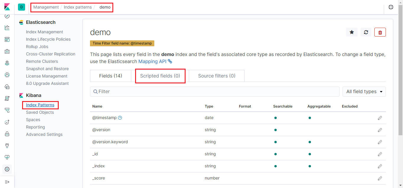 Number类型的字段,如果前期logstash没有进行合适的数据类型转换,就需要在Kibana对应索引下的Script Field来实现基于某个字段的类型转换(Script Field中需要编写Script语句,在此不做详解)